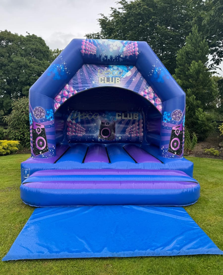 Bring the party to your event or venue with our 12ft x 12ft Disco Ready Bouncy Castle. Perfect for children aged 12 years and under, this top-of-the-range inflatable features a vibrant purple and blue disco club theme, setting the stage for hours of energetic, music-filled fun. The castle comes complete with an integrated LED disco light and Bluetooth speaker, ensuring every bounce is matched with a pulse of light and the beat of your favourite tunes.