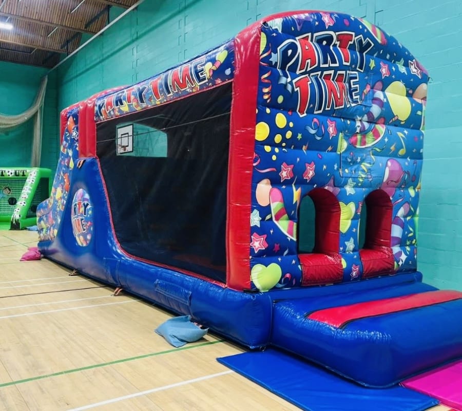 Ready to book? Reserve the 28ft Party Time Obstacle Course (8ft Platform) for your next event. Fast delivery and expert setup across Oswestry, Ellesmere, Welshpool, Newtown, Shrewsbury, Whitchurch, Wrexham, Chester and surrounding areas. Contact us to check availability and pricing.